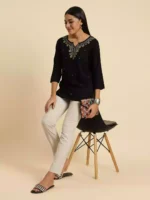 Look ethereal in this Aari work Kurti, freshly crafted in the lightness and comfy feel of cotton.