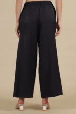 Black Solid Flared Rayon Palazzo With Pleats