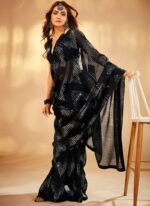 Introducing the Dark Blue Faux Georgette Sequins Sari A Timeless Elegance When it comes to traditional Indian attire the saree stands out as a symbol of grace femininity and enduring beauty. Among the myriad options available the Dark Blue Faux Georgette Sequins Sari emerges as a masterpiece of elegance blending modern design with traditional craftsmanship to create a garment that is truly timeless. The foundation of this saree is the exquisite faux georgette fabric. Known for its lightweight and sheer texture faux georgette drapes beautifully allowing you to move with grace and comfort.