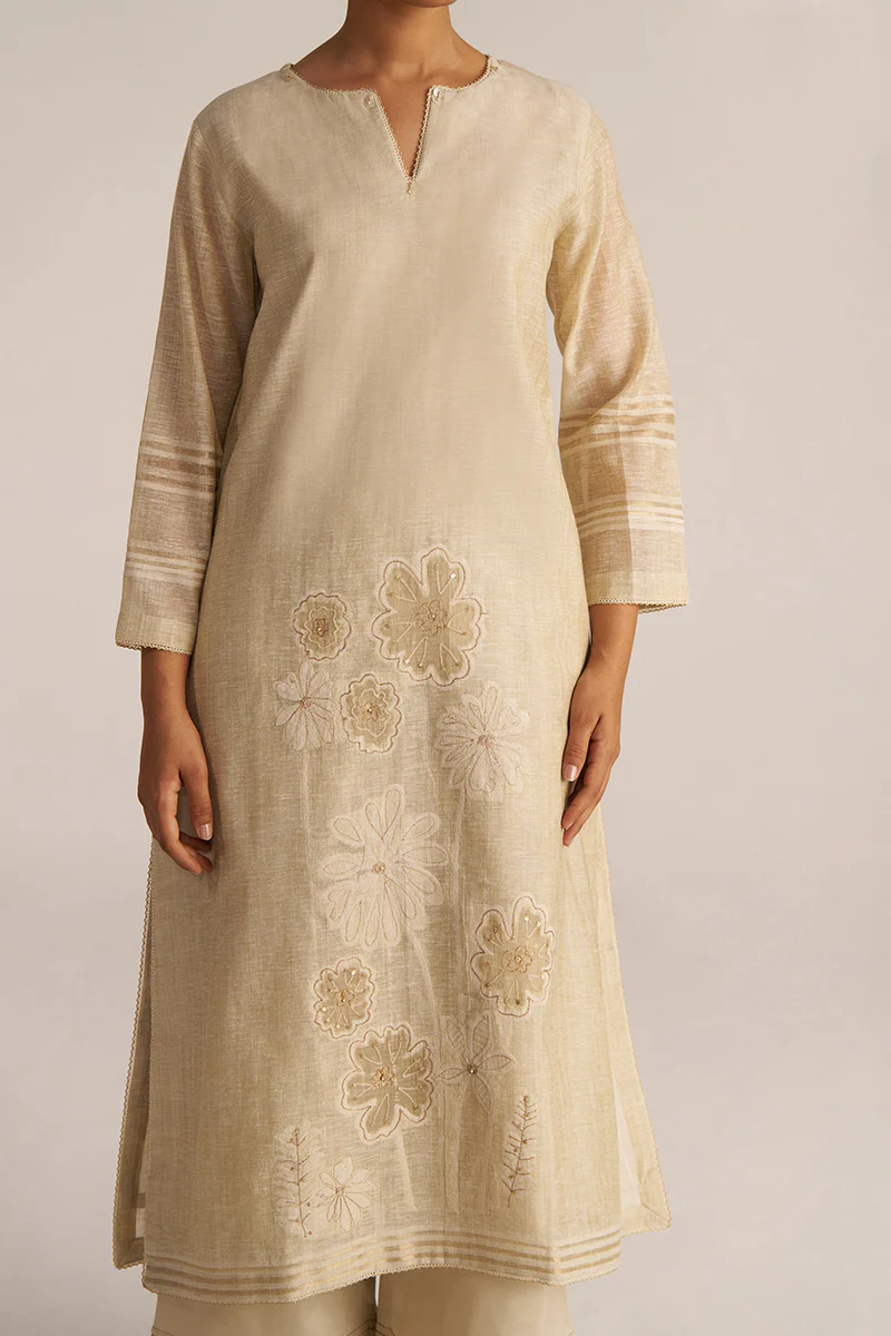 – This set includes woven chanderi kurta, dupatta
