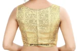 Home Blouse Sleeveless Blouse Golden Banarasi Silk Saree Blouse, Readymade Saree Blouse, Indian Blouse, Short Top, Sleeveless Saree Blouse, Boat Neck Women’s Sari Blouse