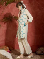 Indo Era Off White Printed A-Line Kurta Trousers Set