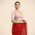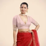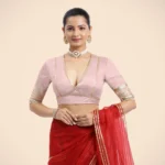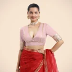 Nafeeza x Tyohaar | Elbow Sleeves Baby Pink FlexiFi Gota Embellished Saree Blouse with Plunging V-Neck