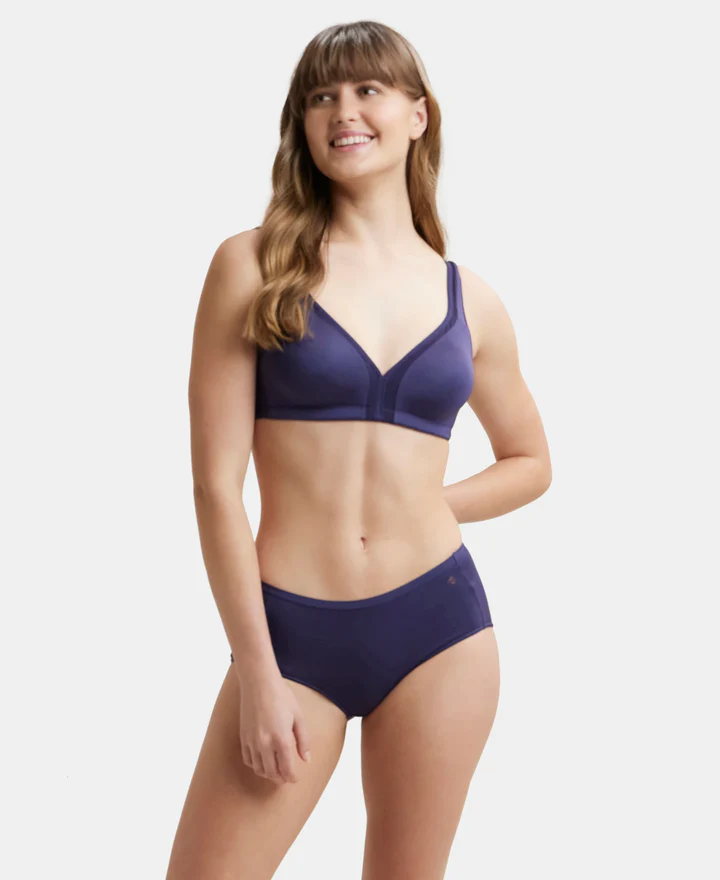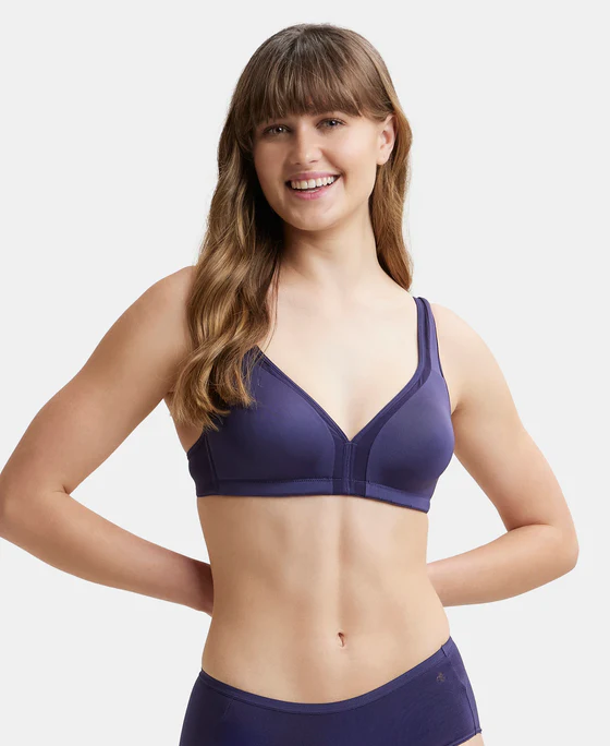 Non Padded Soft Touch Microfiber Elastane Stretch Full Coverage Everyday Bra with Stylized Mesh Panel