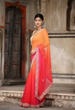Home Saree Orange Multiheaded Beauty Pageant Chiffon Saree