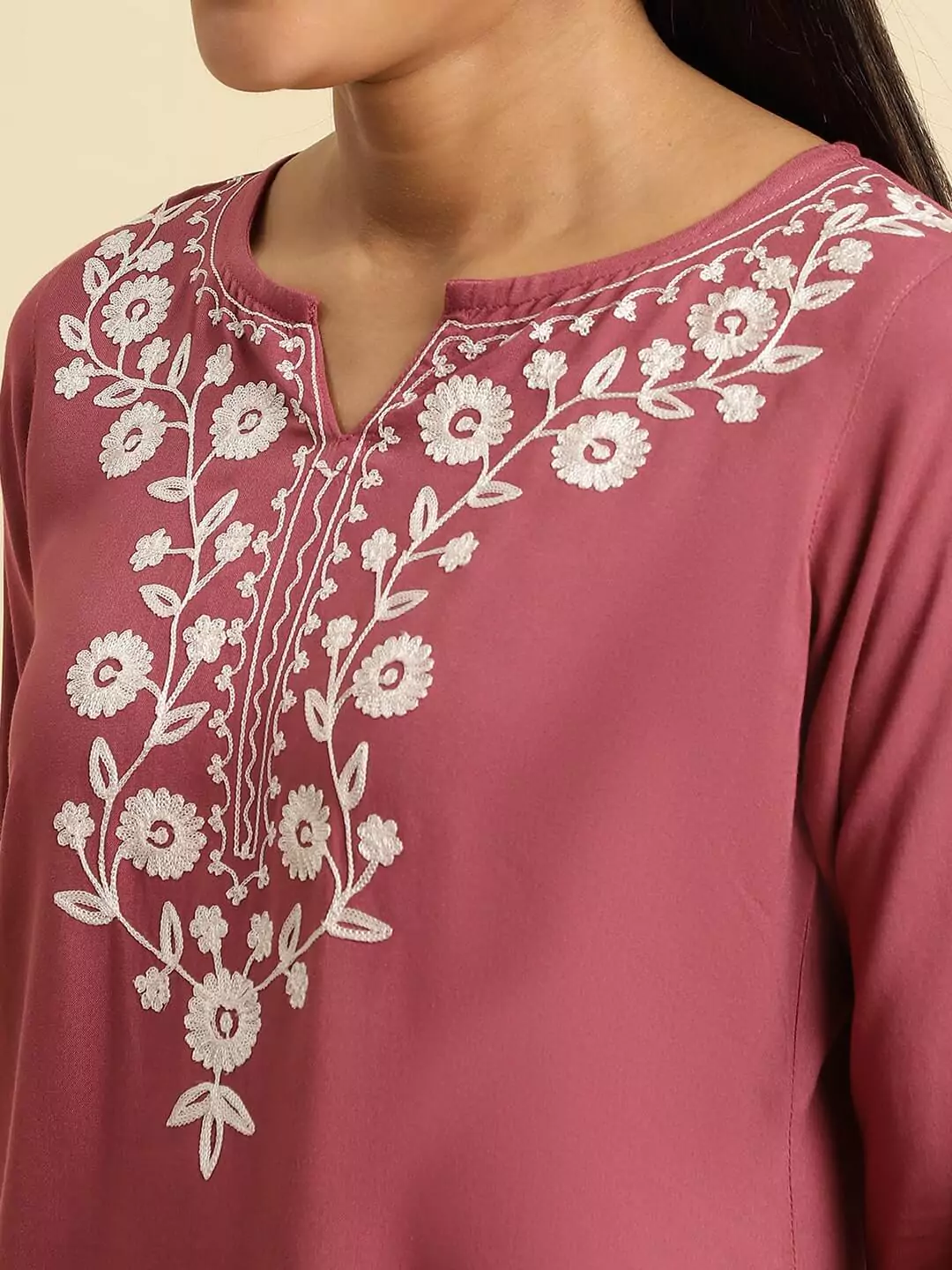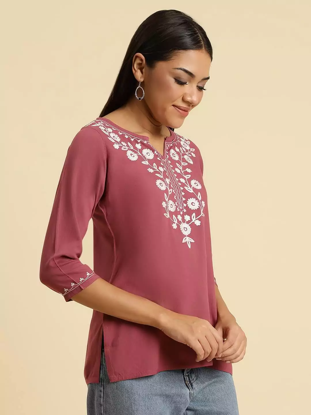 Pink Kashmiri Silk Work Short Kurti