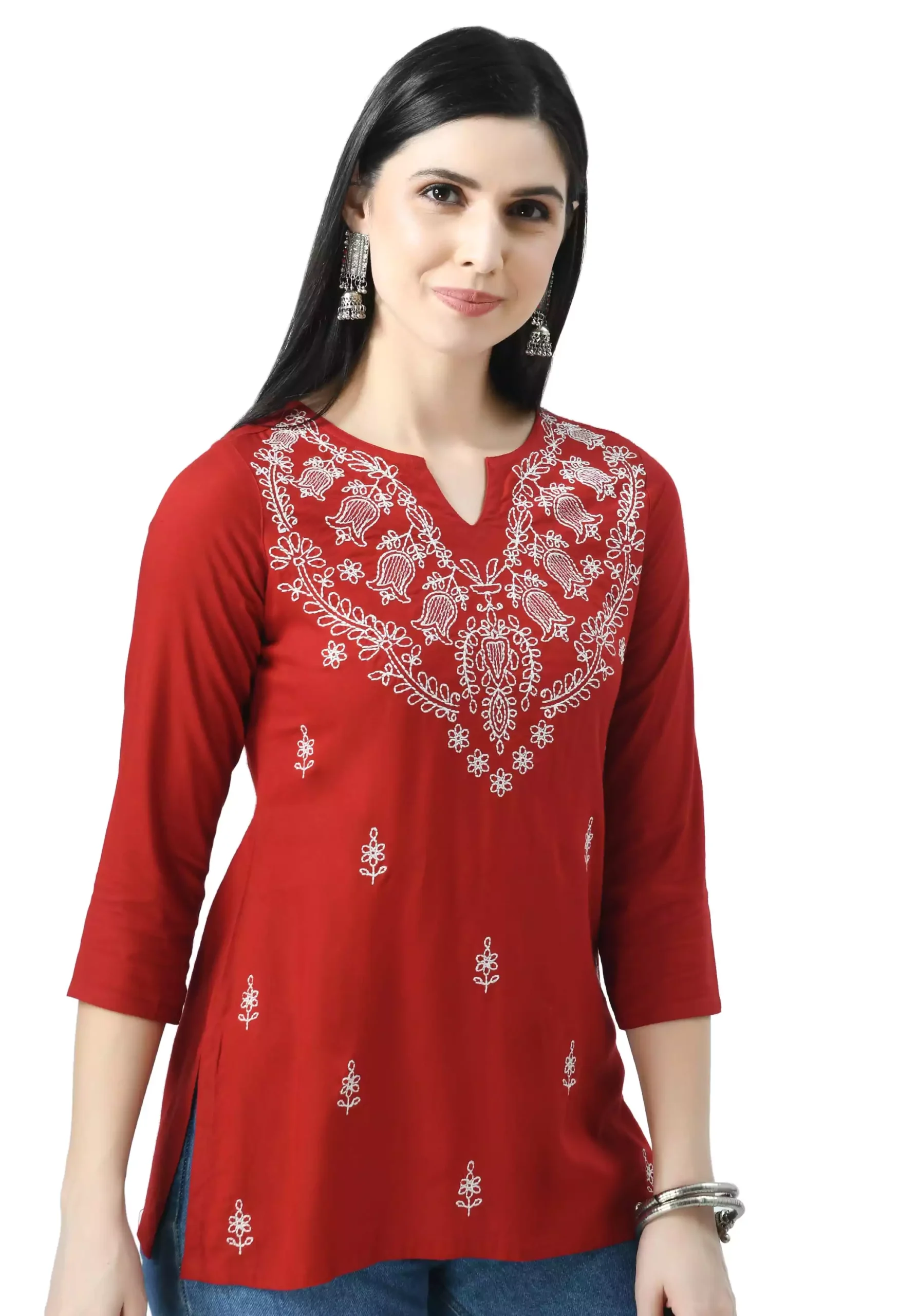 Red Chikankari Short Kurti