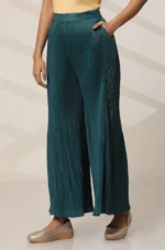 Teal Solid Flared Woven Sharara With Pleats