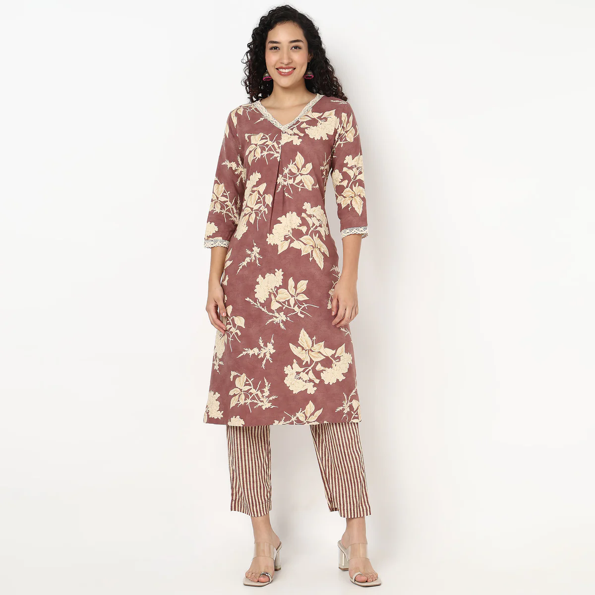 Experience the perfect blend of style and comfort with our V-Neck Printed Kurta and Pant Set. Crafted from 100% Rayon, this set offers a soft, breathable feel that keeps you comfortable all day long. The vibrant printed pattern adds a touch of elegance, making it ideal for both casual outings and festive occasions. The knee-length kurta with a straight cut shape provides a flattering silhouette, while the three-fourths sleeves offer a chic, modern look.