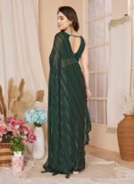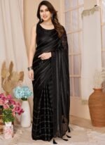• The Georgette Stone Embossed Pre Draped Elegant Saree with Blouse is a sophisticated ensemble that exudes grace and style. This saree made from georgette fabric is perfect for those seeking a blend of traditional charm and modern convenience.