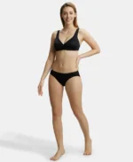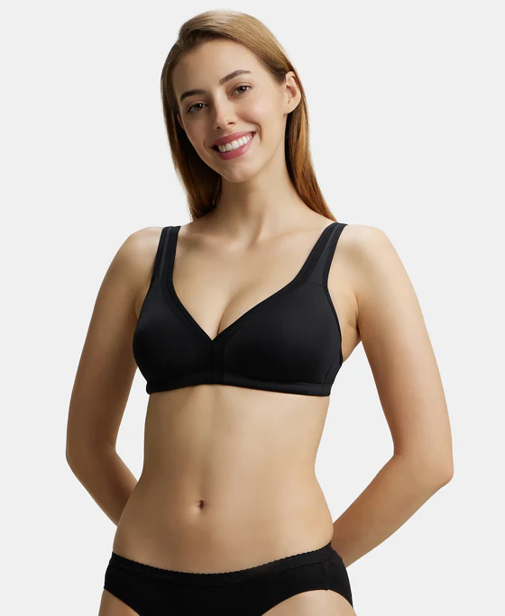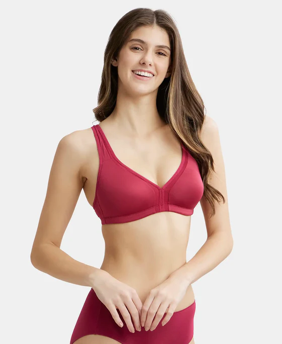 Wire free Non Padded Soft Touch Microfiber Elastane Stretch Full Coverage Everyday Bra with Stylized Mesh Panel